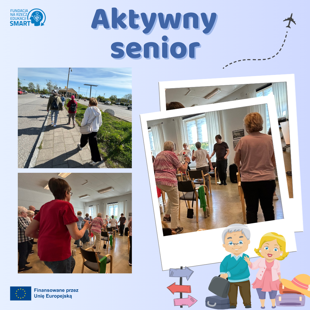 Gdy dotarliśmy na miejsce, seniorzy zostali zaproszeni do współuczestnictwa z seniorami ze Szwecji do wspólnej aktywności fizycznej. Wszyscy uczestnicy zajęć zajęli swoje miejsce w sali i rozpoczęli trening, który był intensywny, natomiast każdy mógł dostosować go pod siebie i swoje potrzeby, dzięki czemu każdy senior był w stanie go ukończyć. Po tym jakże intensywnym rozpoczęciu dnia, zostaliśmy oprowadzeni po obiekcie i zostały nam opowiedziane zajęcia, które mają na co dzień seniorzy. Mogliśmy się jeszcze bardziej zaznajomić z dniem seniora w Szwecji.