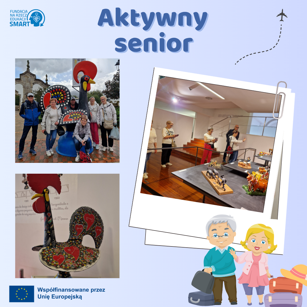 Kolejny dzień z projektu Aktywny senior nr 2023-1-PL01-KA122-ADU-000149185 przyniósł nam kolejne piękne miejsca i dalsze kroki w pracy nad projektami. Rozpoczęliśmy od wizyty w Bom Jesus i Sameiro, a następnie zatrzymaliśmy się w Barcelos – miejscu znanym z legendarnego koguta, który stał się symbolem całej Portugalii. Przewodnik opowiedział nam historię o cudownym ocaleniu, a wielu uczestników zainspirowało się ludowymi wzorami i motywami, które chcieli wykorzystać w swoich projektach.